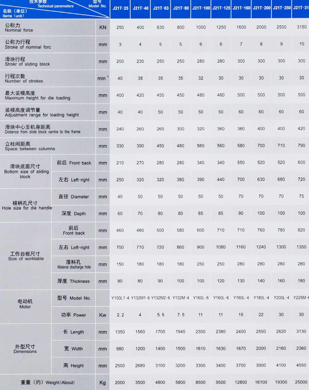 J21T系統(tǒng)開式固定臺大行程壓力機