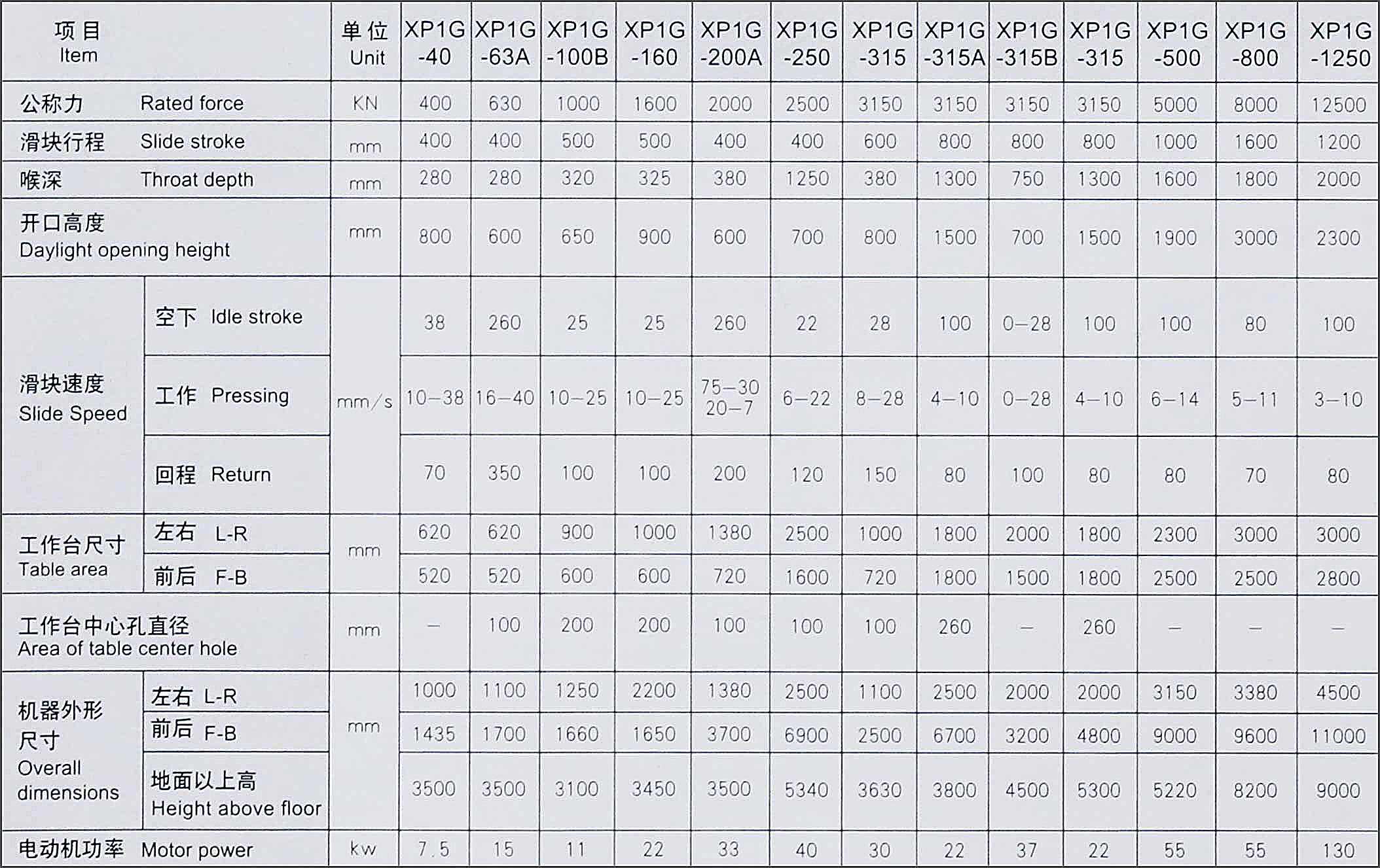 型號:XP1G系列